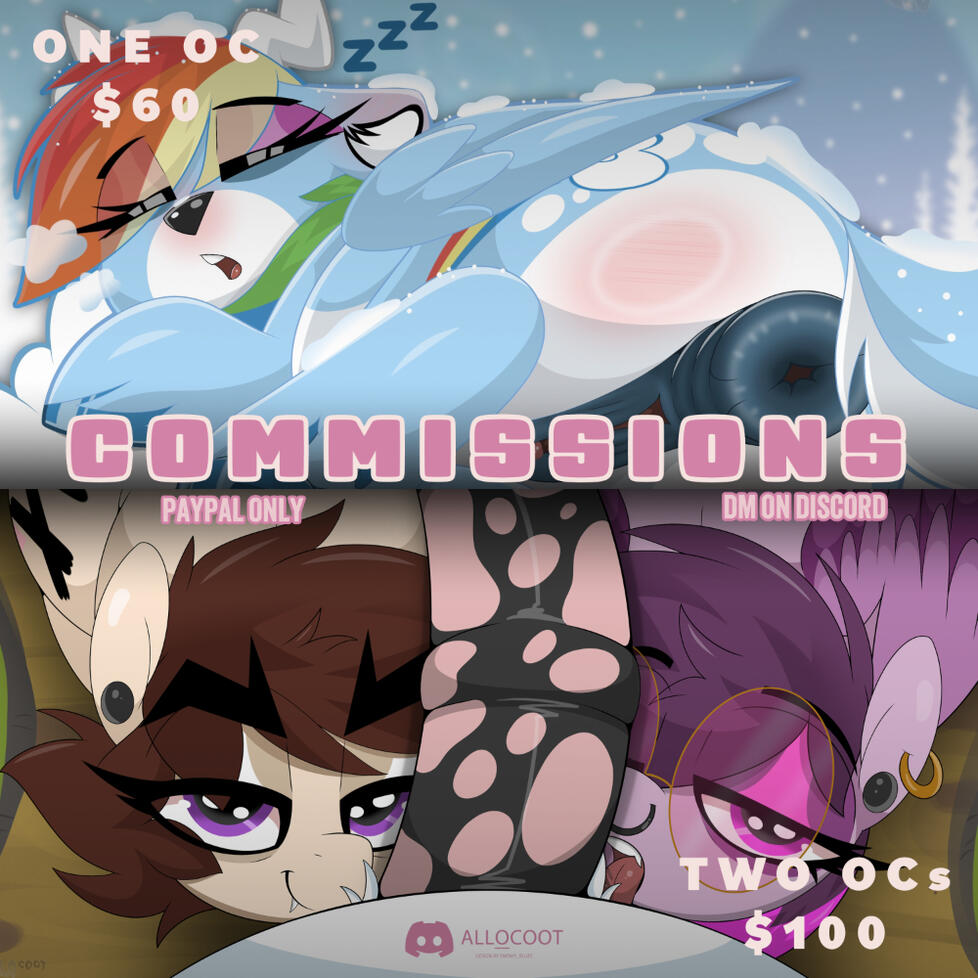 -COMMISSIONS ARE NOT FIRST COME, FIRST SERVE. I will be selecting from the forms to fill my current slots. Upon being selected you will receive a direct message from me via Discord (allocoot).-Every commission piece is colored and shaded to my liking.-COMMISSIONS REQUIRE AN ACCURATE REFERENCE SHEET. If you provide a description, several non-reference sheets, or a ponytown screenshot, I will not accept your commission.-MLP OCs/CANON CHARACTERS ONLY. This means any species that is in the show. Please no complex designs.-I ONLY TAKE PAYPAL VIA INVOICE